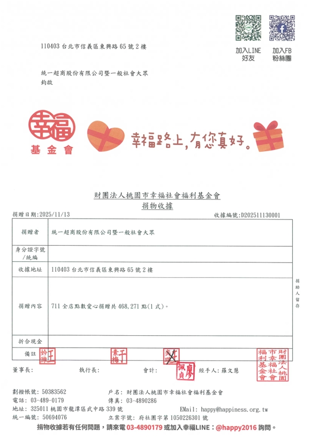 2025/8/6 至 2025/9/15 幸福基金會與 7-ELEVEN 點數愛心捐贈合作,